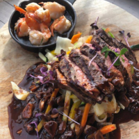 We hebben hier heerlijk gegeten. Ik had samen met mijn zoon de Surf en Turf. Echt super lekker. Mijn vrouw heeft voor bepaalde dingen een voedselallergie. Hiermee werd heel goed rekening gehouden. De bediening was perfect. Vooral de serveerster die ons heeft geholpen was heel aardig.